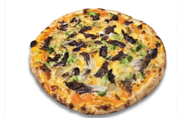 Tomatensauce, Premium Mozzarella, Bio-Spinat, Broccoli, Artischocken, Bio-Peperoni, Knoblauch